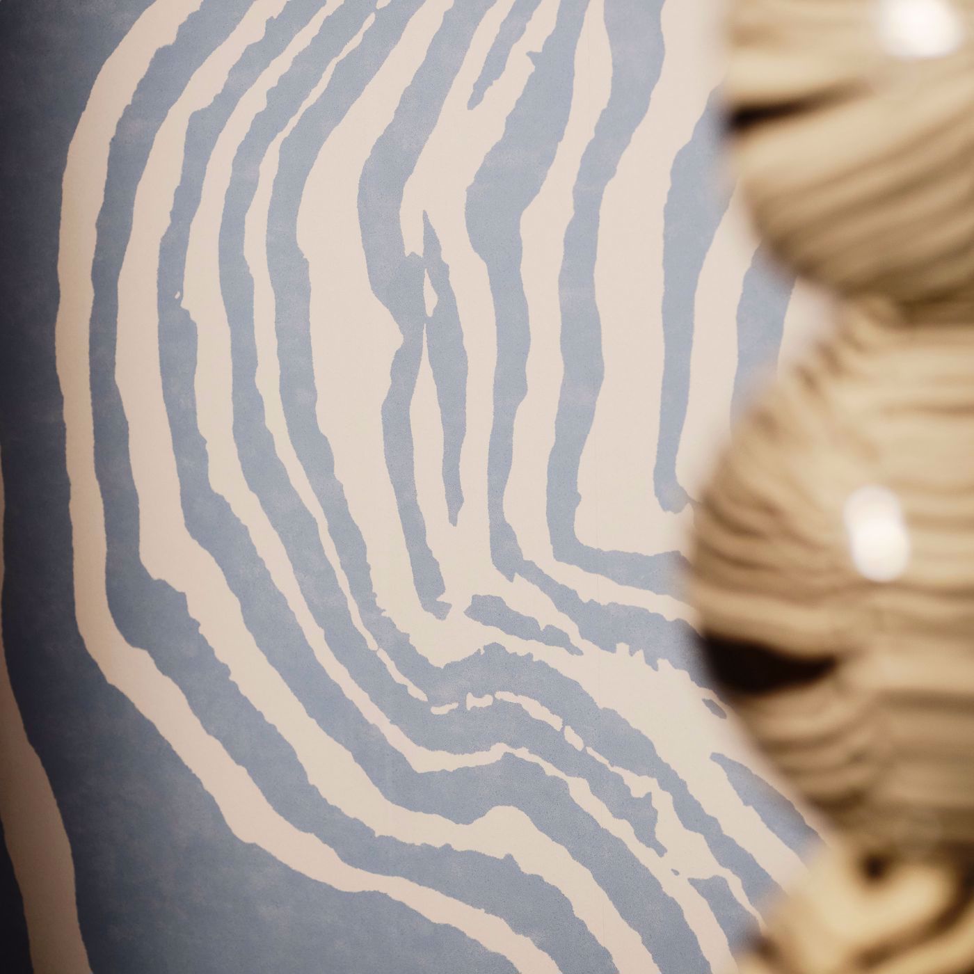 الرخام سمة مميزة لأسلوب هنري هولاند في فن السيراميك، وقد تجسد في ورق جدران كبير الحجم. يتميز التصميم بانسيابية وتحرره من القيود الشكلية، حيث يحاكي تركيبه العضوي تقنية نيريكومي التي تُجسدها أعمال هنري هولاند الخزفية.