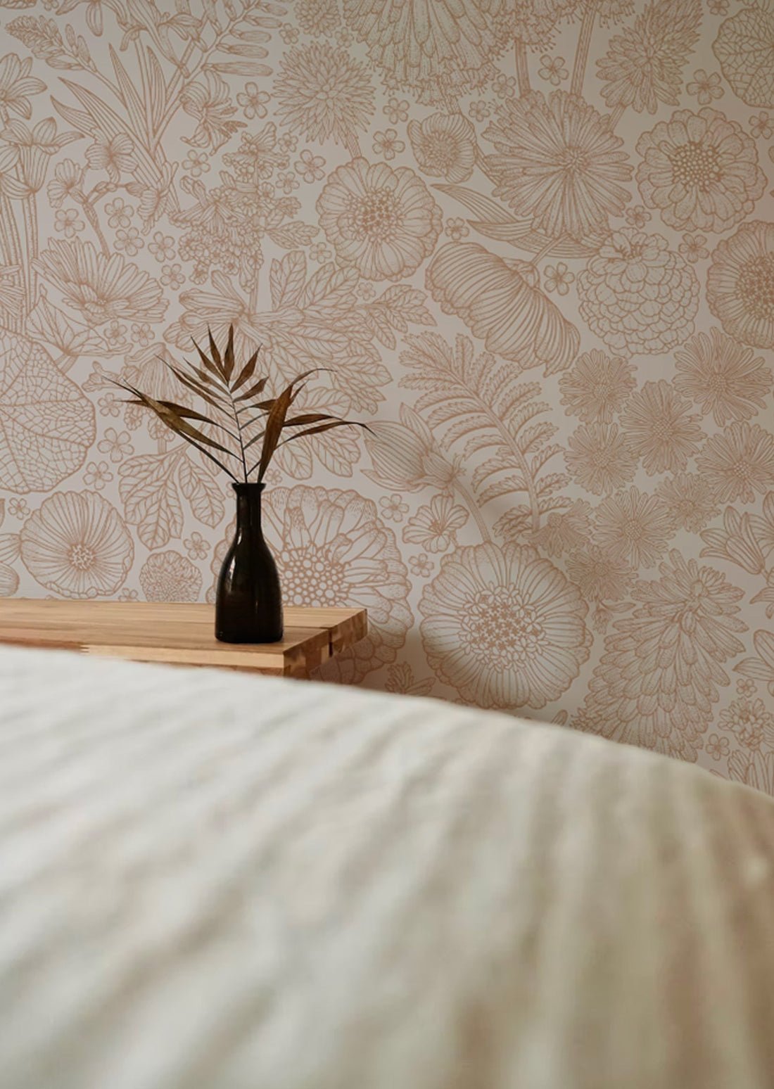This charming yet elegant pattern brings together all the energy of a bustling August flower garden. The subtle two tone wallpaper which is available in multiple colour variations includes a mix of buds, flowers and leaves. Like a midsummer August evening, it brings a positive energetic feel to your interior.