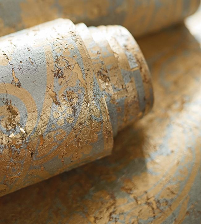 Curtis Damask, handsome and invigorating, is the perfect balance of contemporary styling and traditional design with the medieval motif printed upon a cork and foil background.