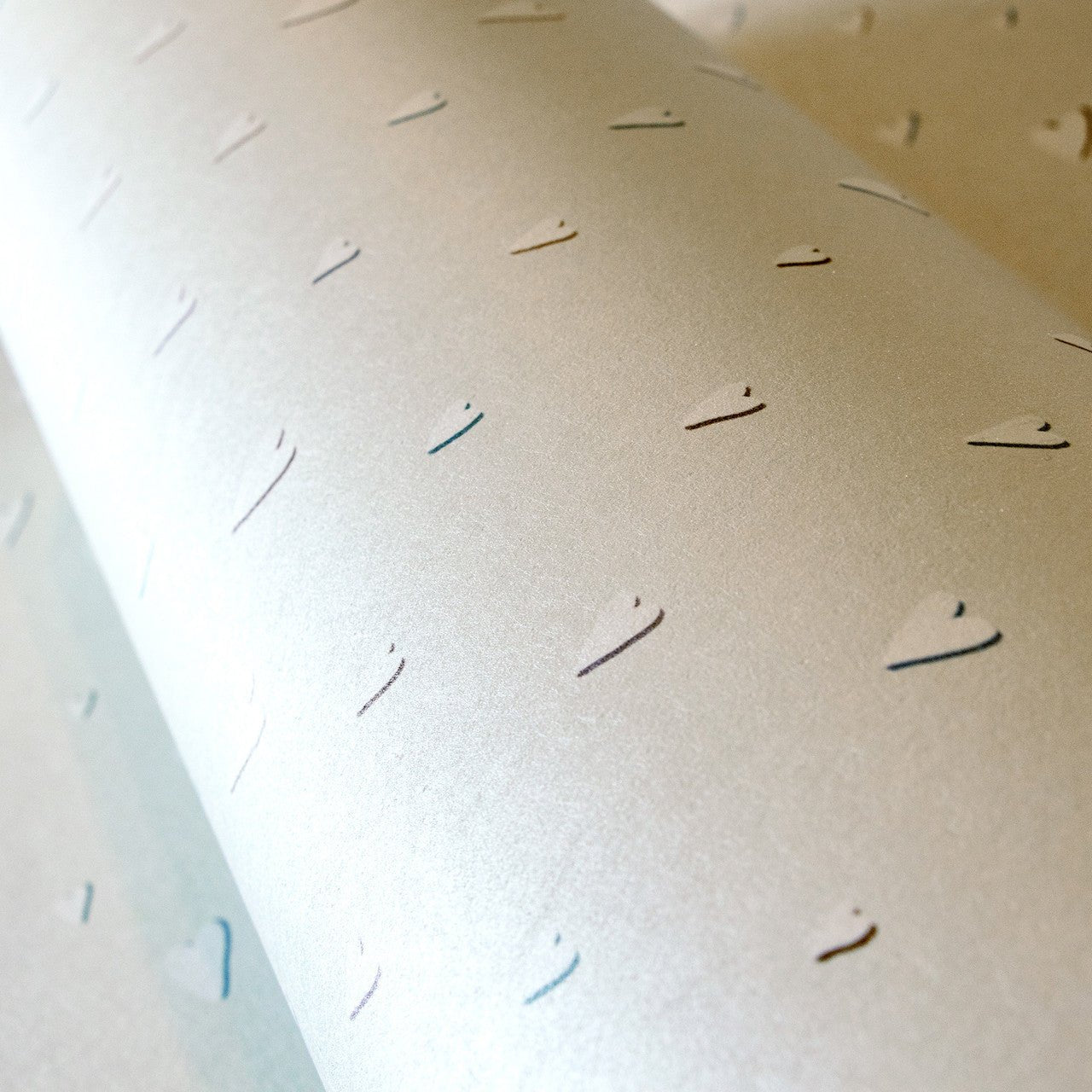 Fill your walls with an explosion of love with a scattering of delicate miniature hearts, featuring playful muted colours against a gently shimmering lustrous finish.