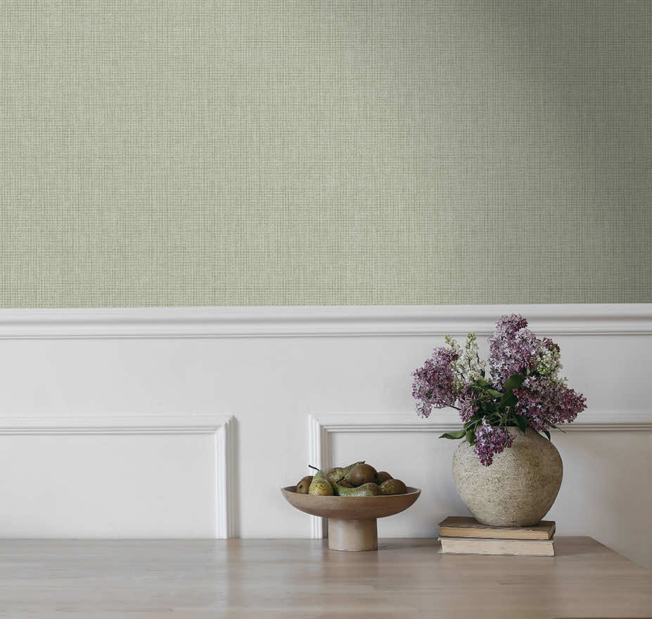 This linen weave wallpaper mimics a natural, woven textured fabric. The subtle variations and soft grid like texture creates depth.